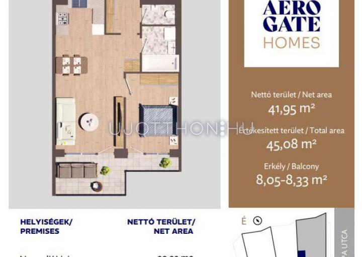 2 szobás 45 m2-es Lakás Aerogate Homes - Budapest XIX. kerület, Kispest, Tompa utca 162119/7 hrsz