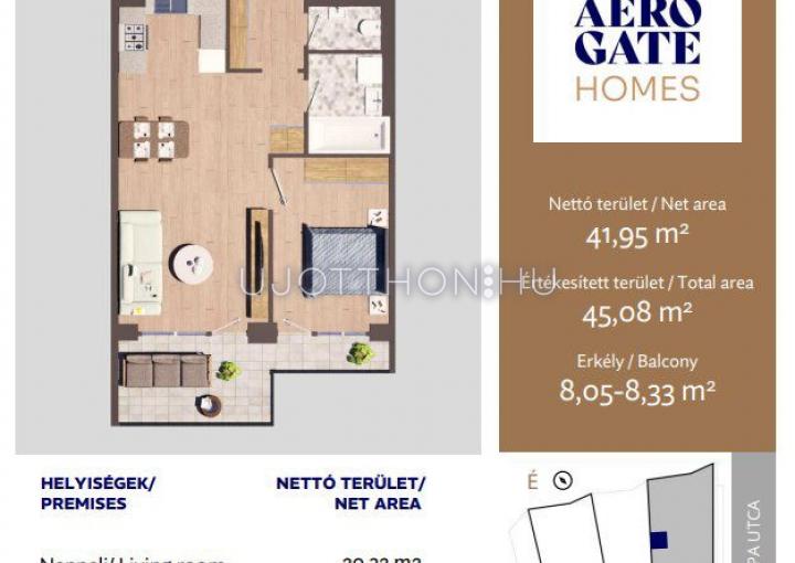 2 szobás 45 m2-es Lakás Aerogate Homes - Budapest XIX. kerület, Kispest, Tompa utca 162119/7 hrsz