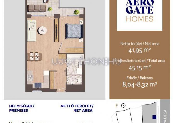2 szobás 45 m2-es Lakás Aerogate Homes - Budapest XIX. kerület, Kispest, Tompa utca 162119/7 hrsz