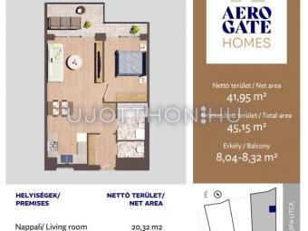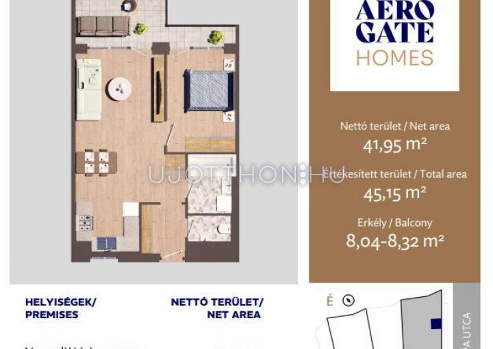 2 szobás 45 m2-es Lakás Aerogate Homes - Budapest XIX. kerület, Kispest, Tompa utca 162119/7 hrsz