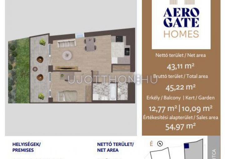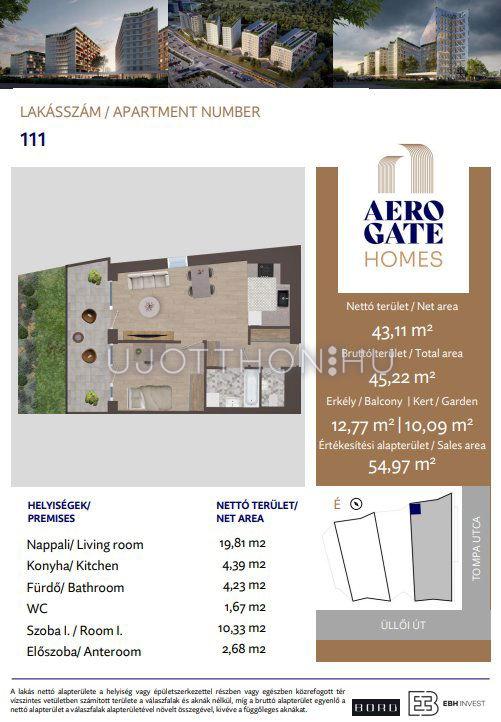 2 szobás 43 m2-es Lakás Aerogate Homes - Budapest XIX. kerület, Kispest, Tompa utca 162119/7 hrsz