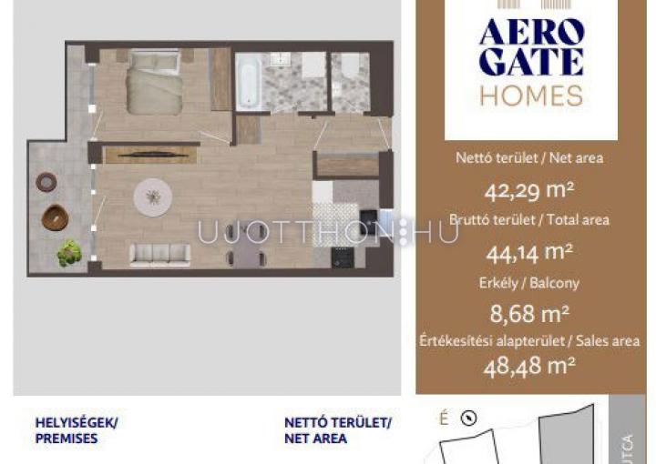 2 szobás 42 m2-es Lakás Aerogate Homes - Budapest XIX. kerület, Kispest, Tompa utca 162119/7 hrsz