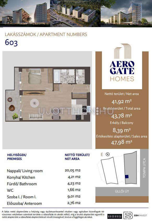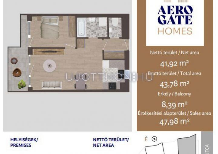 2 szobás 42 m2-es Lakás Aerogate Homes - Budapest XIX. kerület, Kispest, Tompa utca 162119/7 hrsz