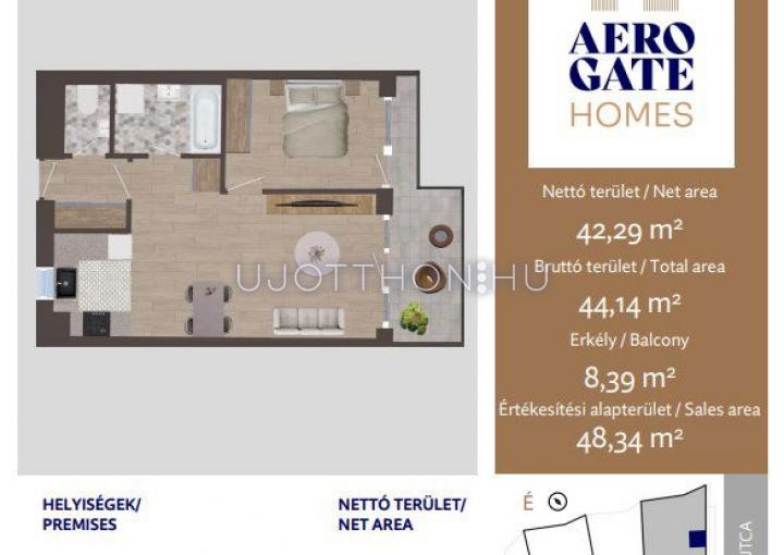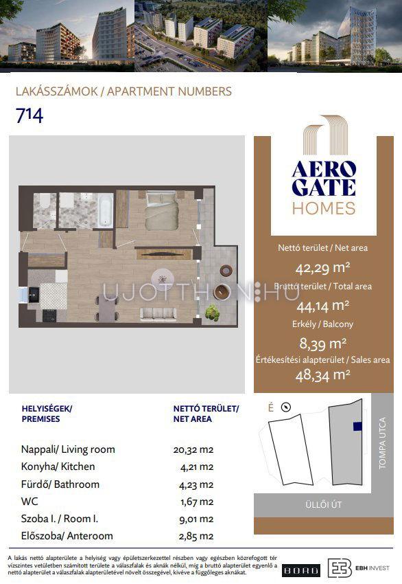2 szobás 42 m2-es Lakás Aerogate Homes - Budapest XIX. kerület, Kispest, Tompa utca 162119/7 hrsz