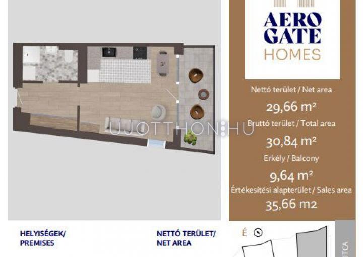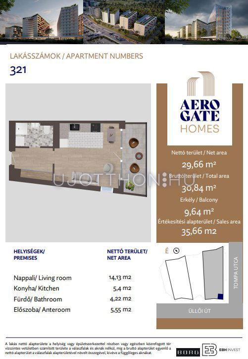 1 szobás 30 m2-es Lakás Aerogate Homes - Budapest XIX. kerület, Kispest, Tompa utca 162119/7 hrsz