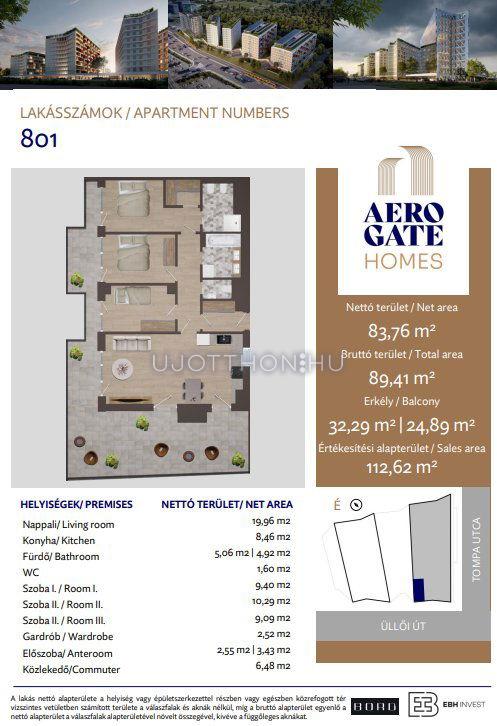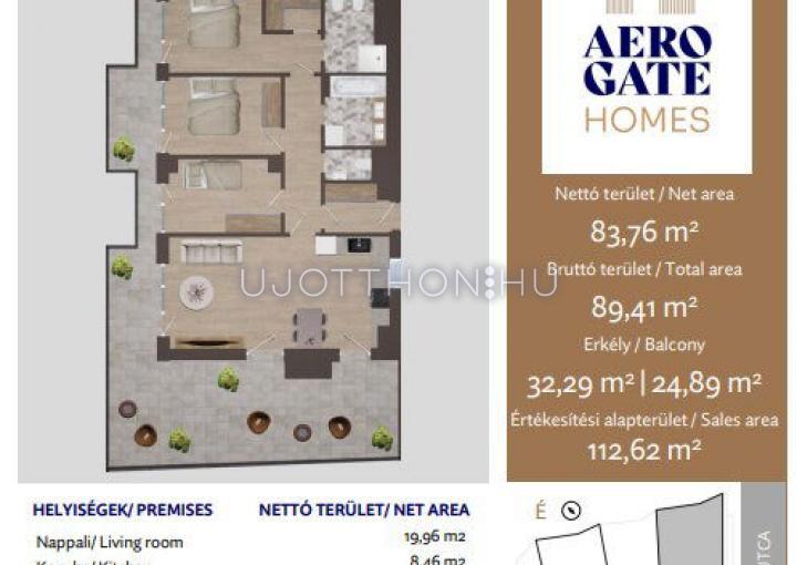 4 szobás 84 m2-es Lakás Aerogate Homes - Budapest XIX. kerület, Kispest, Tompa utca 162119/7 hrsz