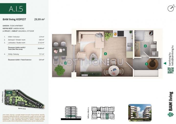 1 szobás 30 m2-es Lakás BAM living Kispest - ahol a nyugalom és a modern városi élet találkozik. - Budapest XIX. kerület, Kispest, Iparos utca 2