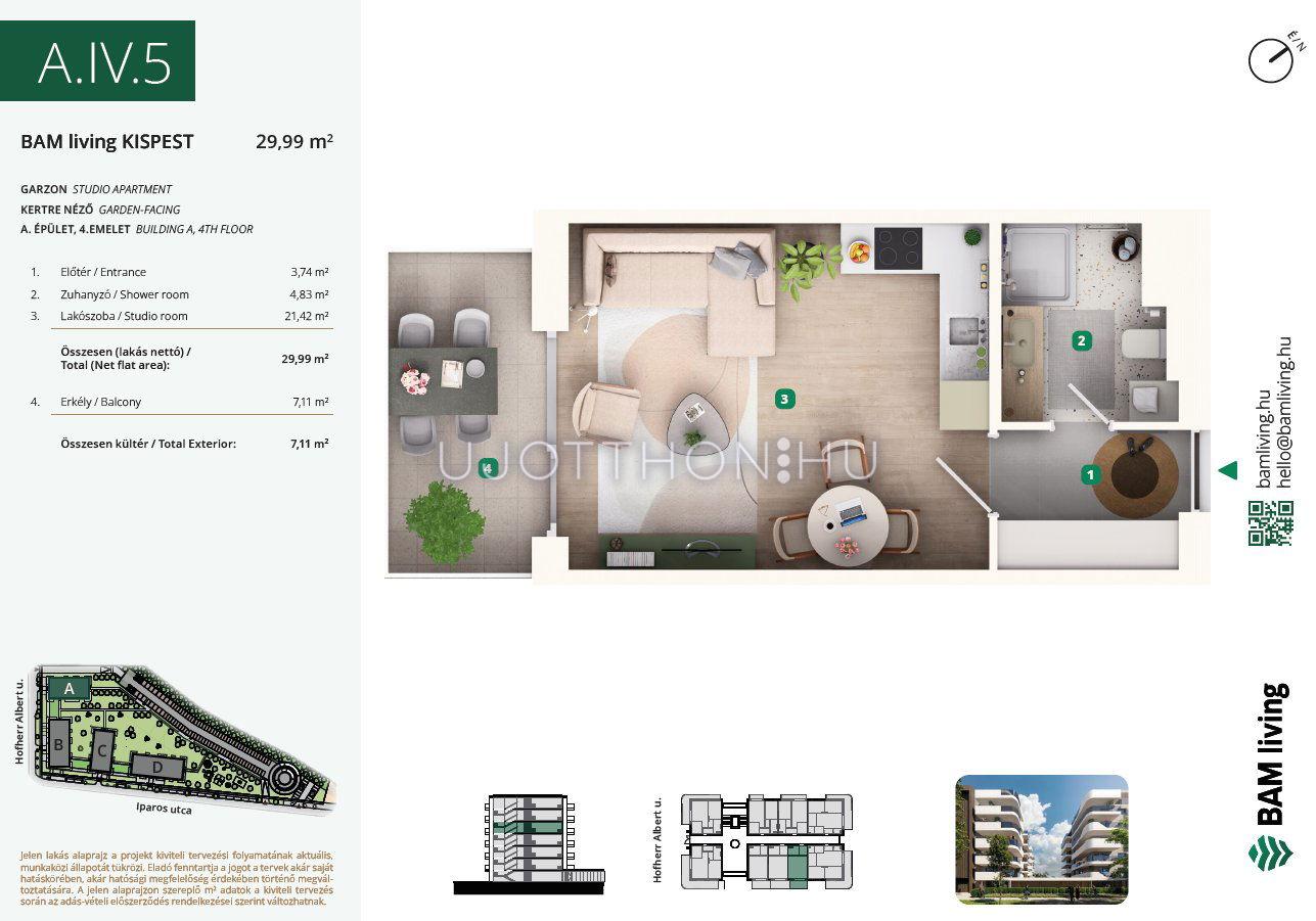 1 szobás 30 m2-es Lakás BAM living Kispest - ahol a nyugalom és a modern városi élet találkozik. - Budapest XIX. kerület, Kispest, Iparos utca 2