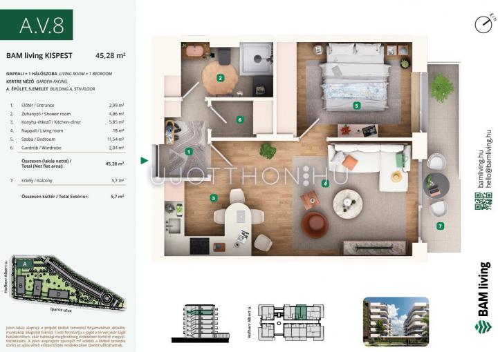 2 szobás 45 m2-es Lakás BAM living Kispest - ahol a nyugalom és a modern városi élet találkozik. - Budapest XIX. kerület, Kispest, Iparos utca 2