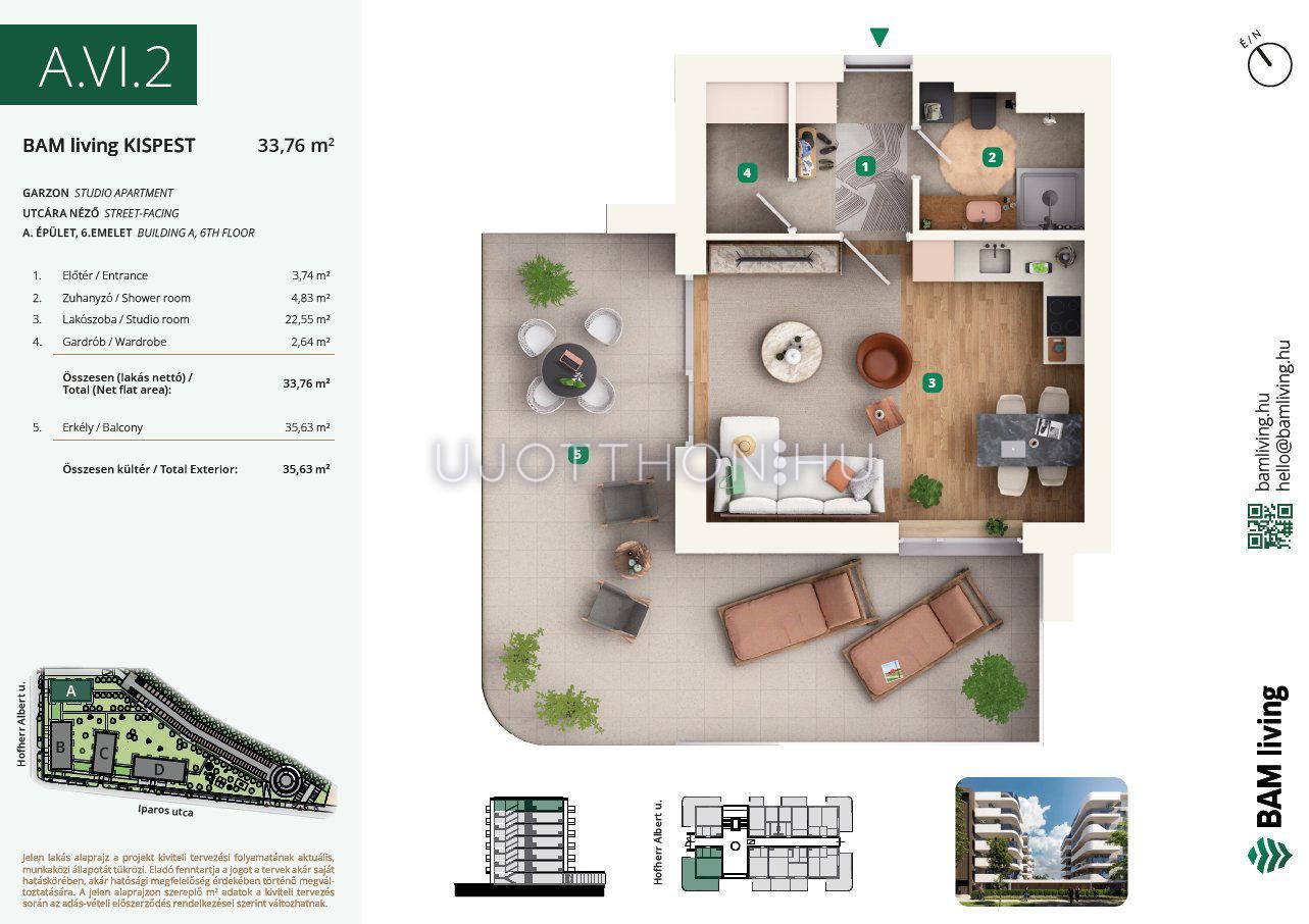 1 szobás 34 m2-es Lakás BAM living Kispest - ahol a nyugalom és a modern városi élet találkozik. - Budapest XIX. kerület, Kispest, Iparos utca 2
