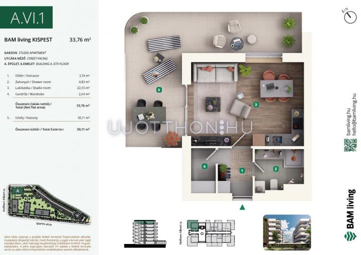 1 szobás 34 m2-es Lakás BAM living Kispest - ahol a nyugalom és a modern városi élet találkozik. - Budapest XIX. kerület, Kispest, Iparos utca 2