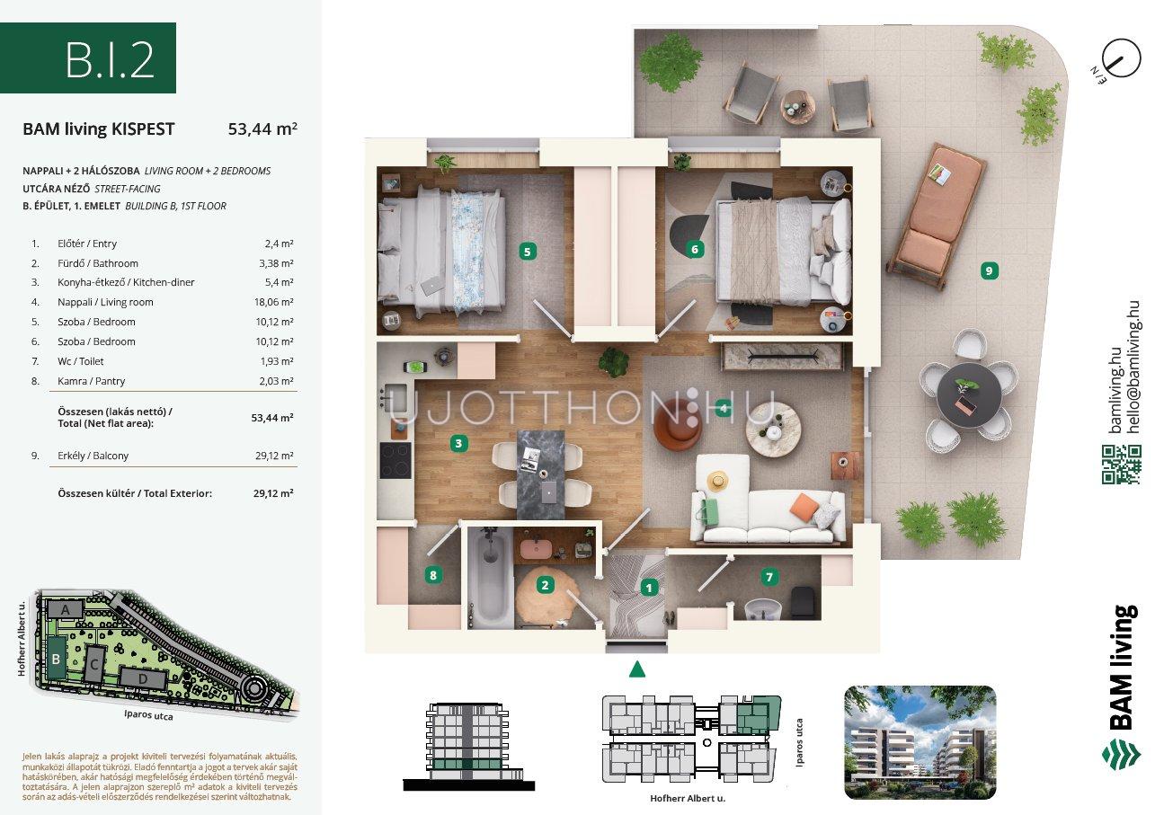 3 szobás 68 m2-es Lakás BAM living Kispest - ahol a nyugalom és a modern városi élet találkozik. - Budapest XIX. kerület, Kispest, Iparos utca 2