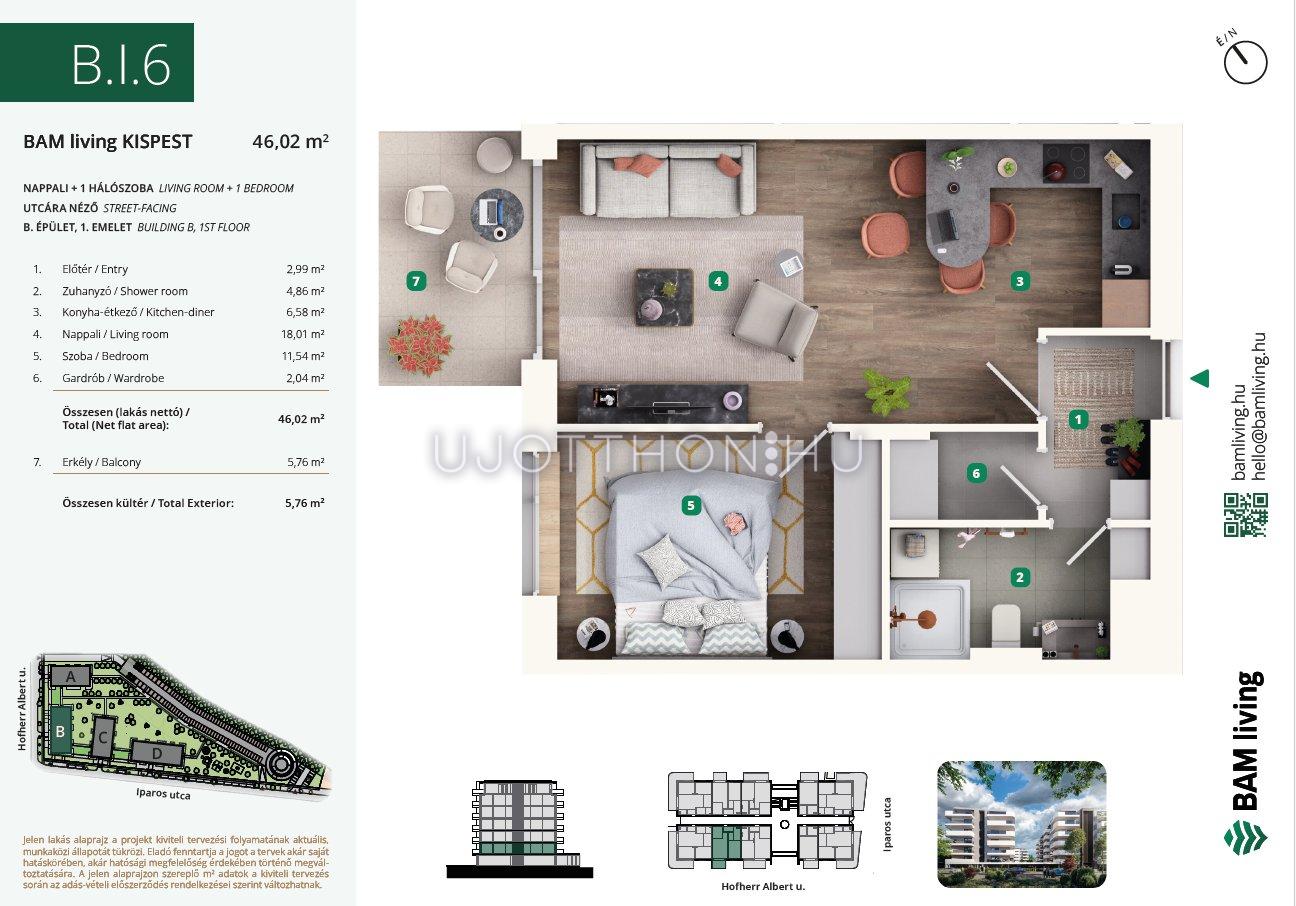 2 szobás 49 m2-es Lakás BAM living Kispest - ahol a nyugalom és a modern városi élet találkozik. - Budapest XIX. kerület, Kispest, Iparos utca 2