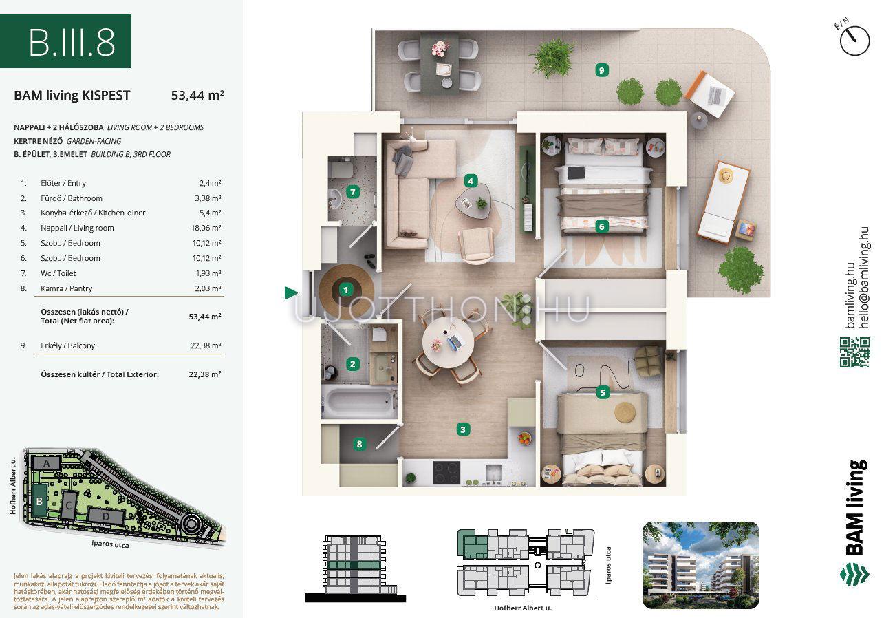 3 szobás 65 m2-es Lakás BAM living Kispest - ahol a nyugalom és a modern városi élet találkozik. - Budapest XIX. kerület, Kispest, Iparos utca 2