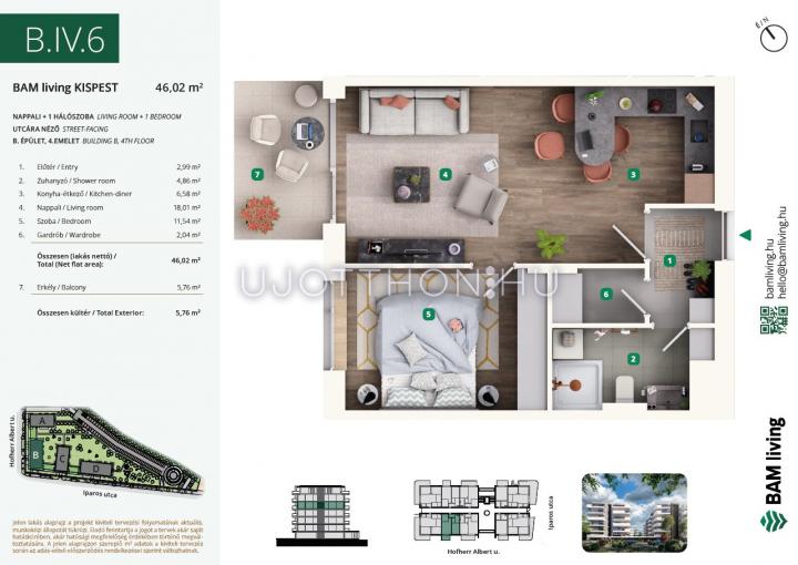 2 szobás 49 m2-es Lakás BAM living Kispest - ahol a nyugalom és a modern városi élet találkozik. - Budapest XIX. kerület, Kispest, Iparos utca 2