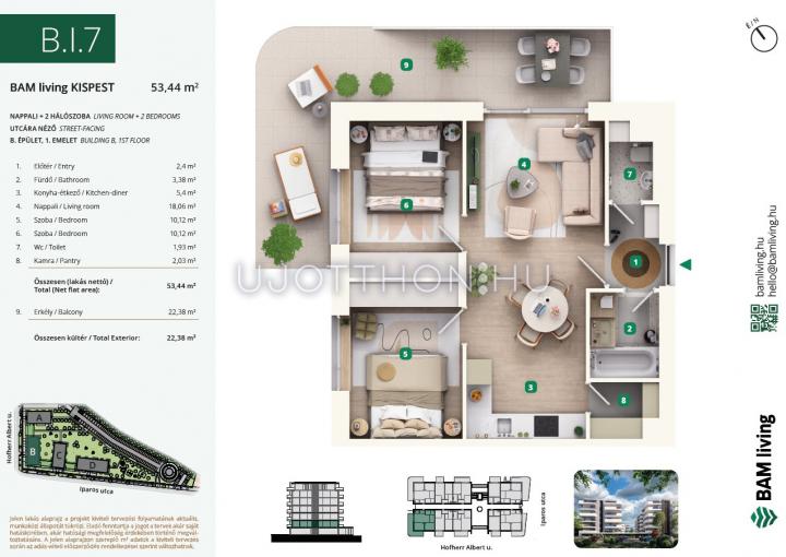 3 szobás 65 m2-es Lakás BAM living Kispest - ahol a nyugalom és a modern városi élet találkozik. - Budapest XIX. kerület, Kispest, Iparos utca 2