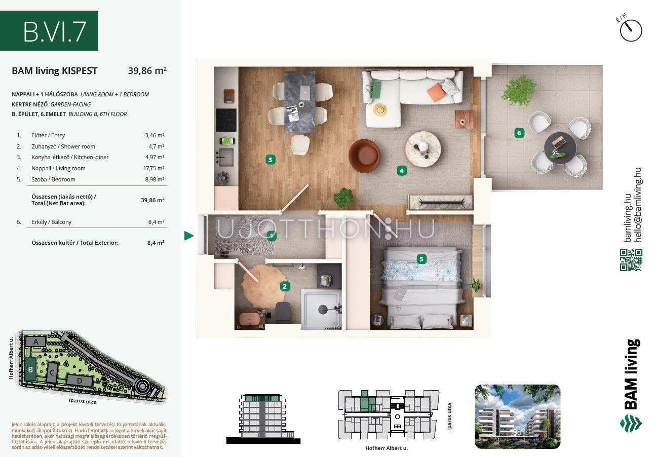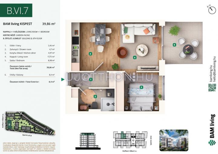 2 szobás 44 m2-es Lakás BAM living Kispest - ahol a nyugalom és a modern városi élet találkozik. - Budapest XIX. kerület, Kispest, Iparos utca 2