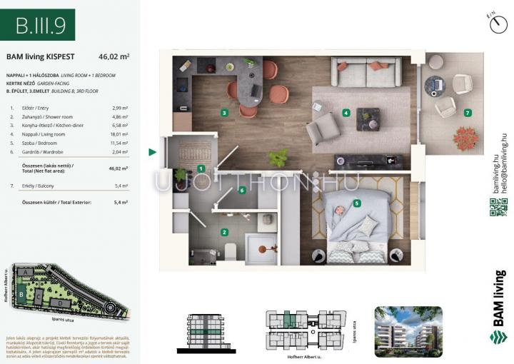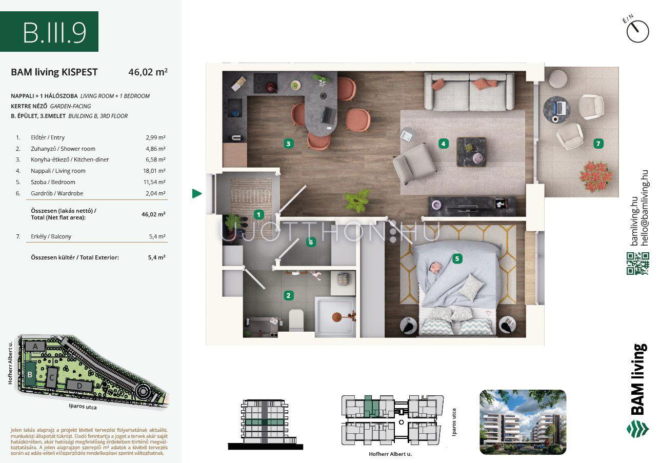2 szobás 49 m2-es Lakás BAM living Kispest - ahol a nyugalom és a modern városi élet találkozik. - Budapest XIX. kerület, Kispest, Iparos utca 2