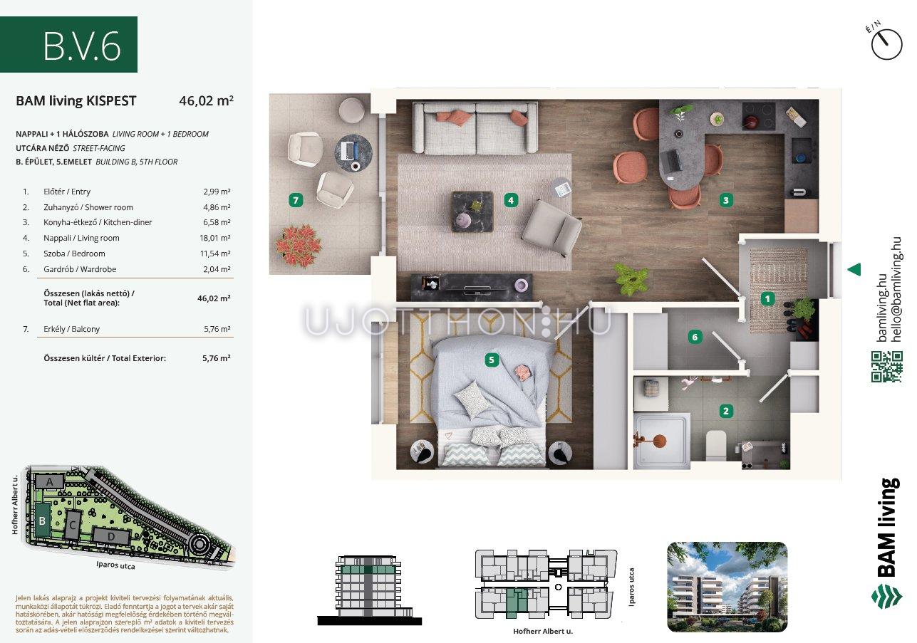 2 szobás 49 m2-es Lakás BAM living Kispest - ahol a nyugalom és a modern városi élet találkozik. - Budapest XIX. kerület, Kispest, Iparos utca 2