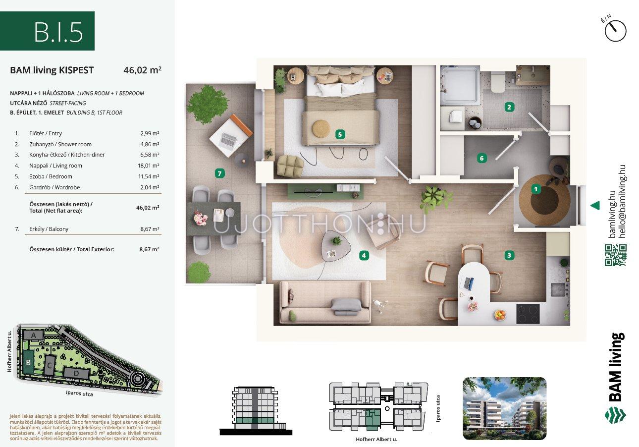 2 szobás 50 m2-es Lakás BAM living Kispest - ahol a nyugalom és a modern városi élet találkozik. - Budapest XIX. kerület, Kispest, Iparos utca 2