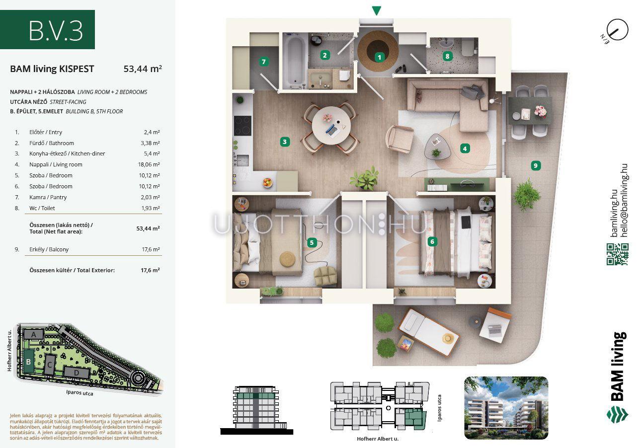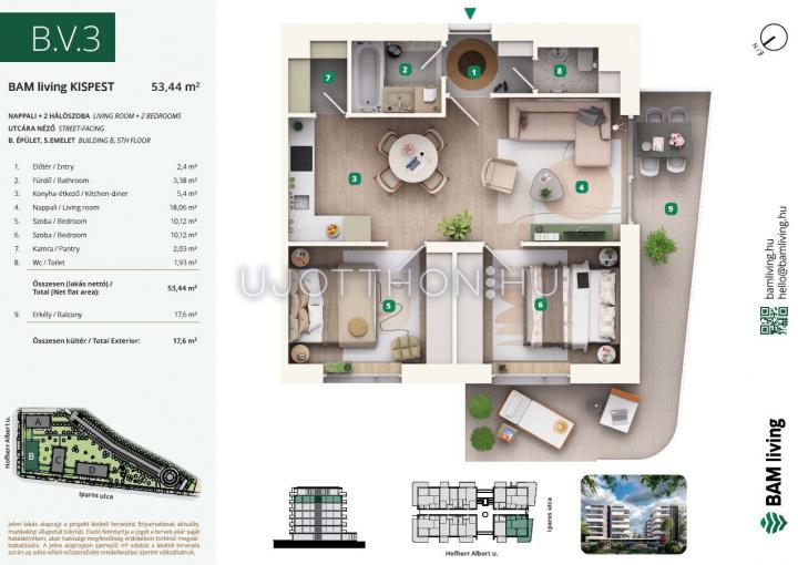 3 szobás 62 m2-es Lakás BAM living Kispest - ahol a nyugalom és a modern városi élet találkozik. - Budapest XIX. kerület, Kispest, Iparos utca 2