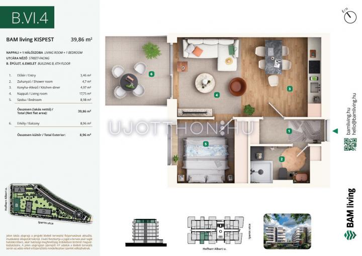 2 szobás 44 m2-es Lakás BAM living Kispest - ahol a nyugalom és a modern városi élet találkozik. - Budapest XIX. kerület, Kispest, Iparos utca 2