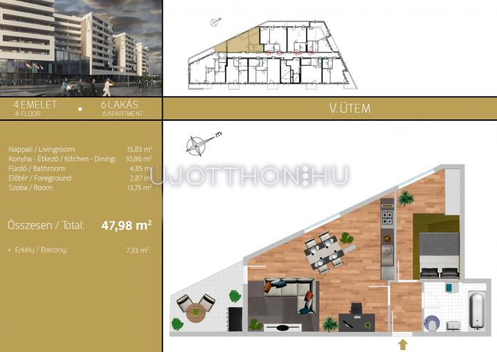 2 szobás 48 m2-es Lakás T.Homes Residence - Budapest XIX. kerület, Lakótelep