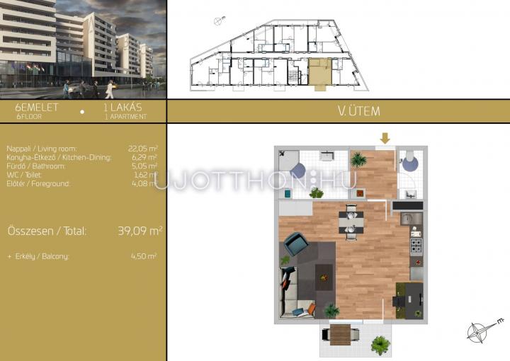 1 szobás 39 m2-es Lakás T.Homes Residence - Budapest XIX. kerület, Lakótelep