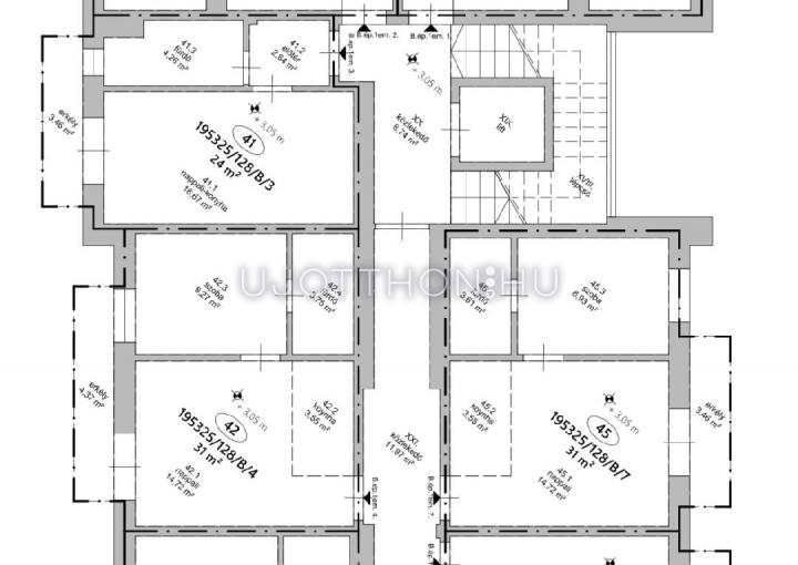 1-2 szobás, világos, erkélyes lakások, a negyedik emeletem egy Penthause + 4 lakás.