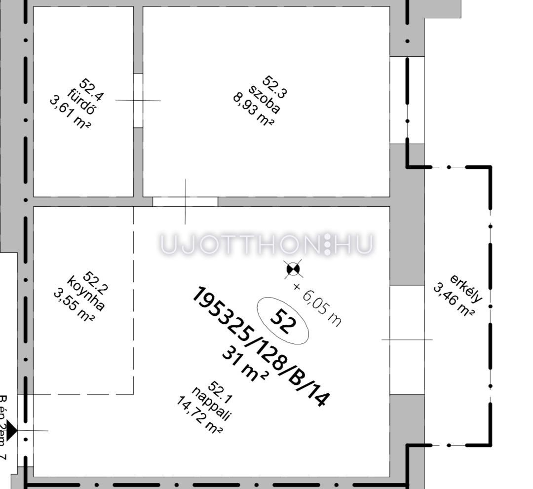 Erkély méret: 3.46 m2