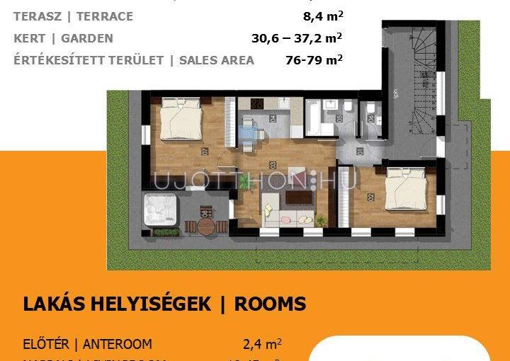 6 lakásos, kétszintes társasházak, tágas udvarral, privát teraszokkal és kertkapcsolatos otthonokkal