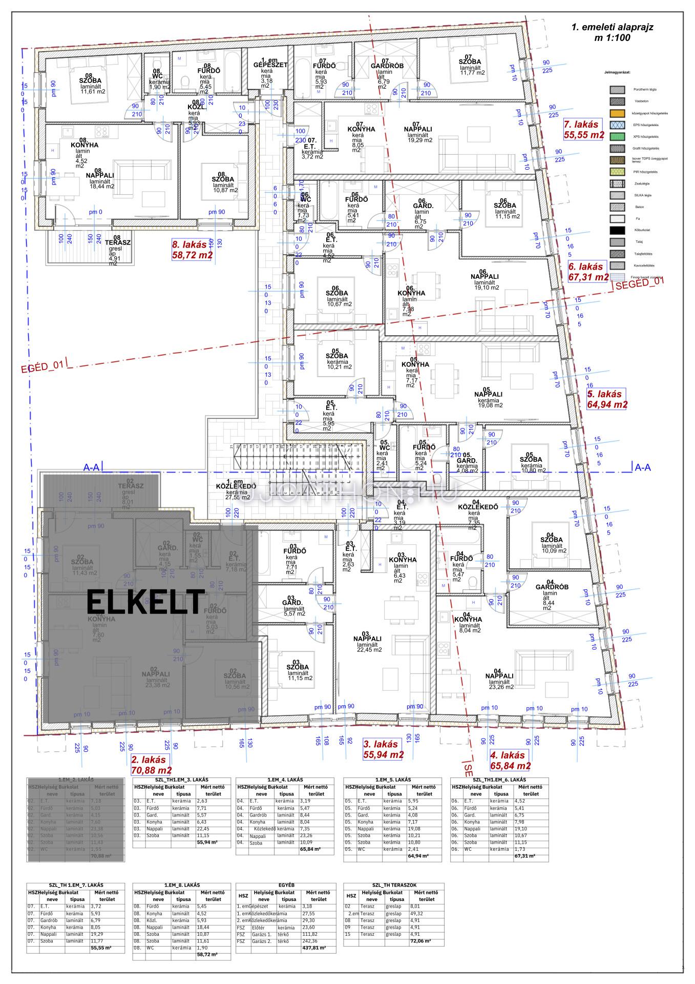 1. és 2. emeleten 7-7 lakás (46.89 - 67.31 nm)