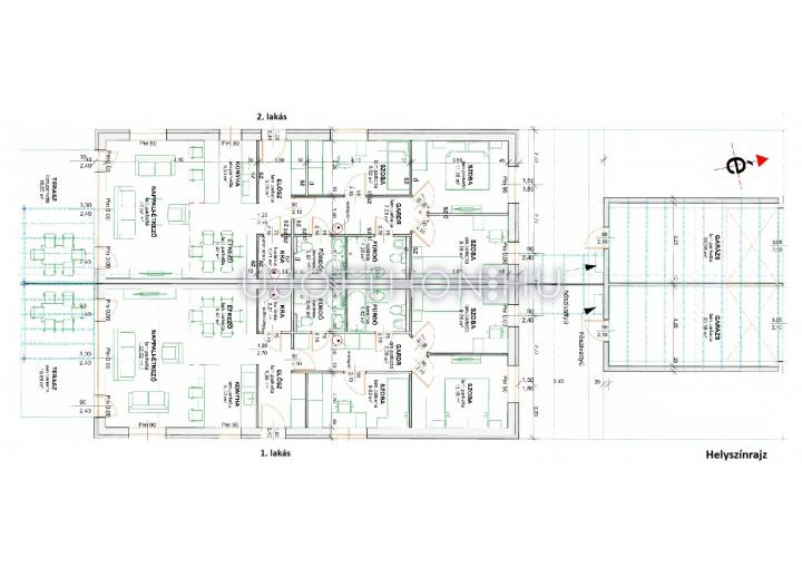 - amerikai konyhás nappali + 3 háló