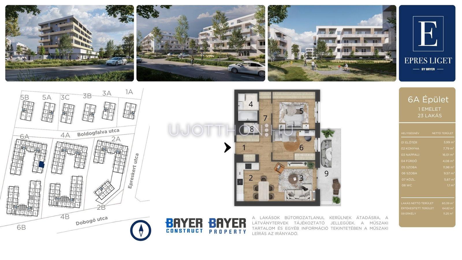 3 szobás 70 m2-es Lakás EPRES LIGET BY BAYER - Debrecen, Epres Kert városrész