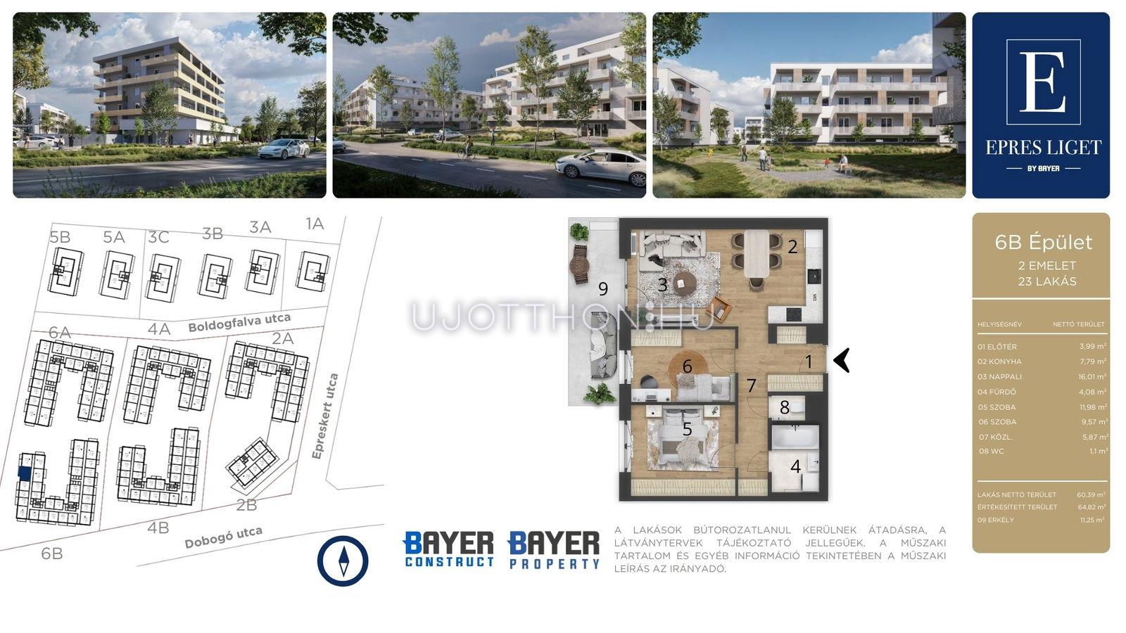 3 szobás 70 m2-es Lakás EPRES LIGET BY BAYER - Debrecen, Epres Kert városrész