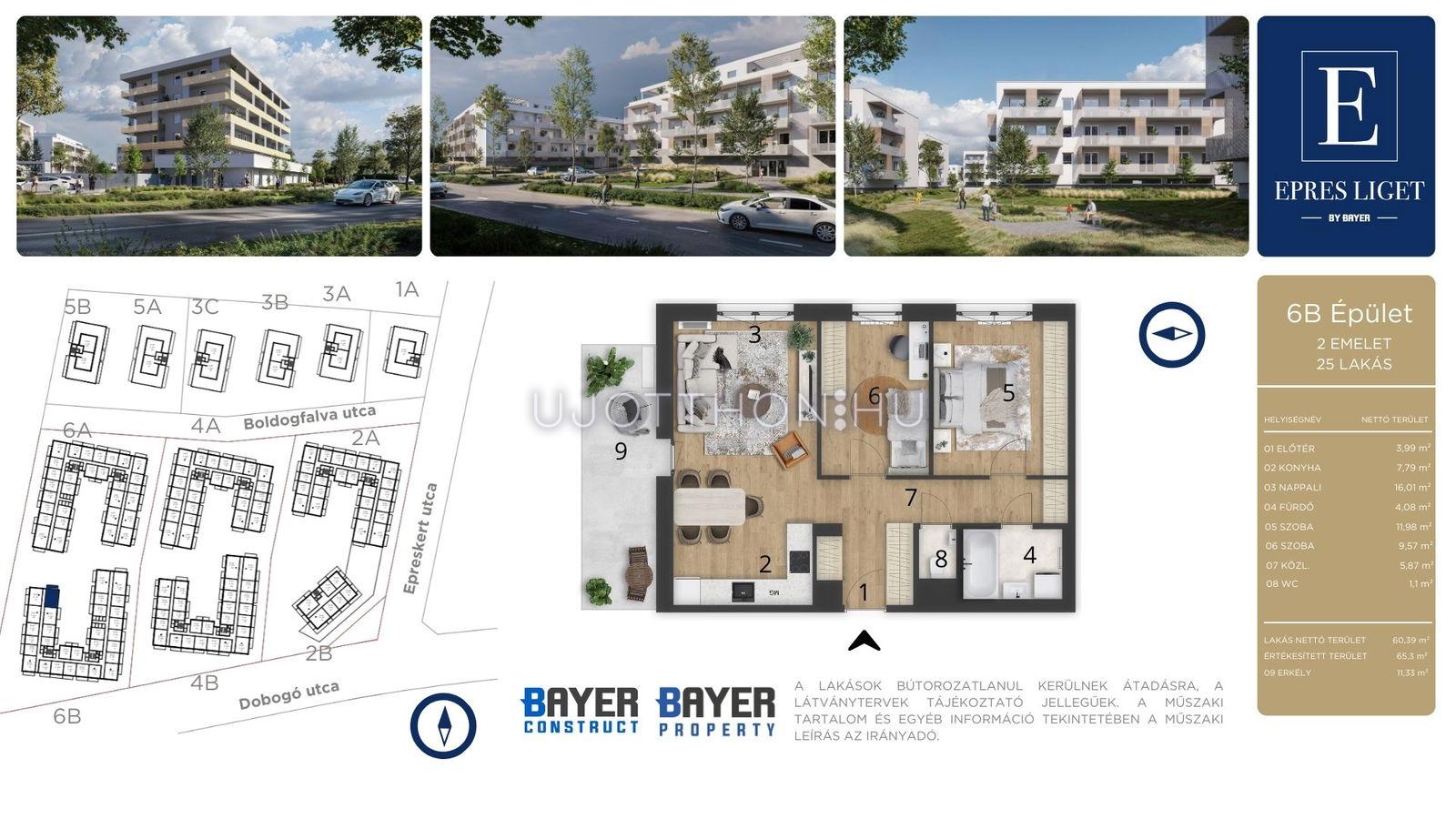 3 szobás 70 m2-es Lakás EPRES LIGET BY BAYER - Debrecen, Epres Kert városrész