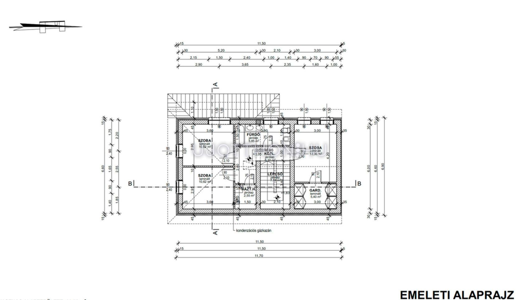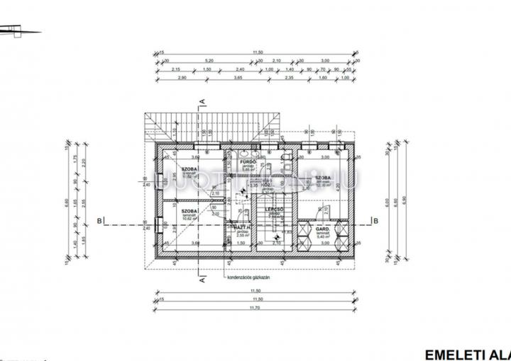 Emelet helyiségei : 3 szoba, fürdő, háztartási helyiség + az egyik szobához gardrob szoba.