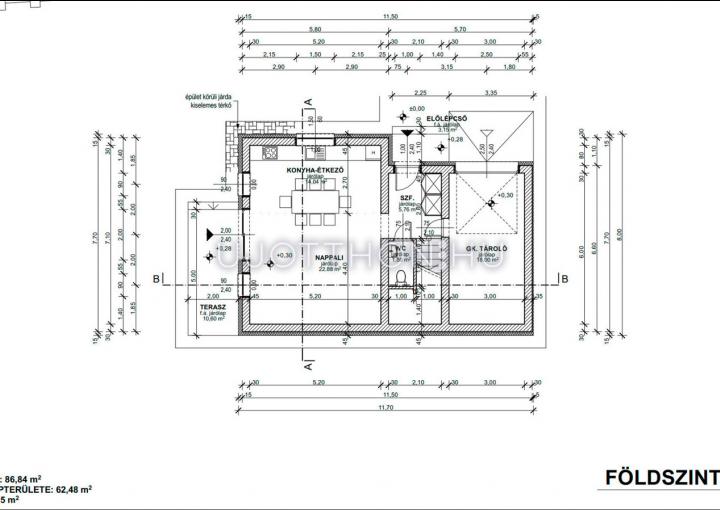 Földszint helyiségei : konyha - étkező - nappali, + terasz + garázs