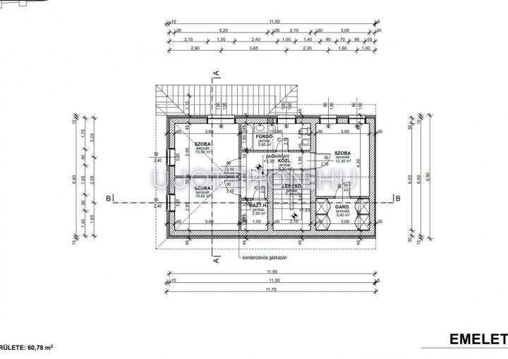 Emelet helyiségei : 3 szoba, fürdő, háztartási helyiség + az egyik szobához gardrob szoba.