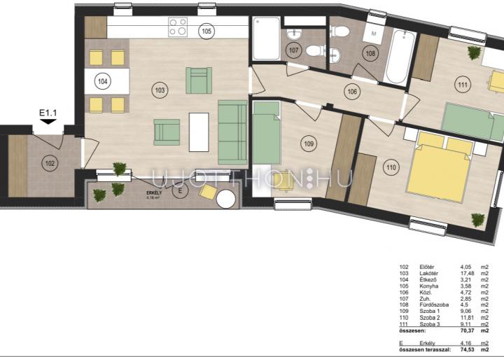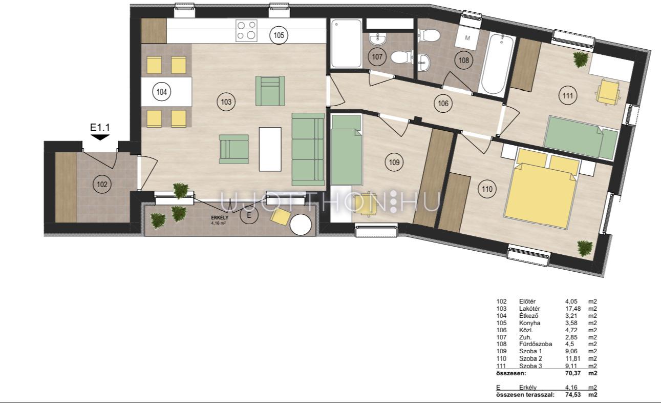 Minden lakás terve átgondolt, élhető tereket tartalmaz, jó kiosztású, modern elrendezésű.