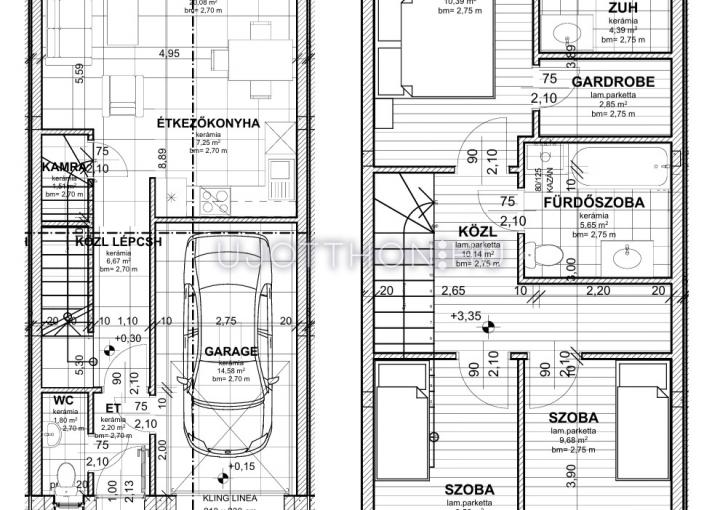 Az emeleten 2 gyerekszoba kádas fürdőszobával, míg a szülői háló saját fürdőszobával és gardróbbal felszerelt.