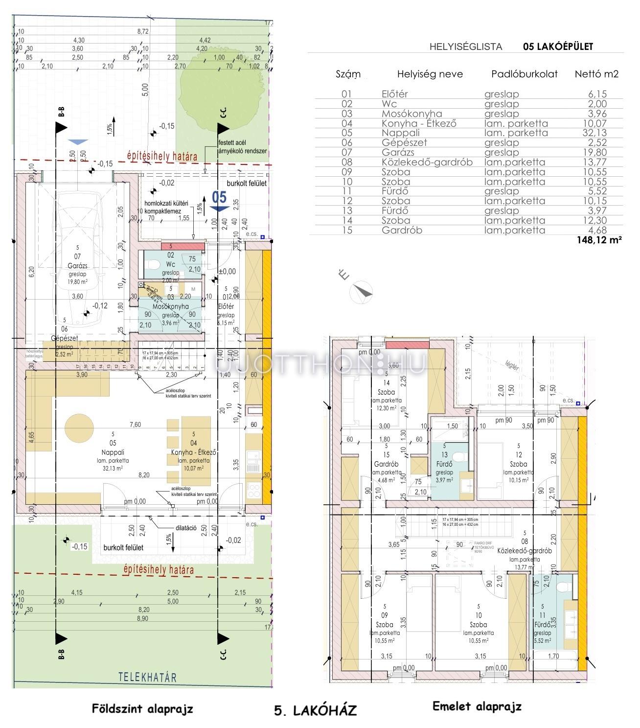 5. lakóház Br. 155 nm, nappali + 4 hálós: