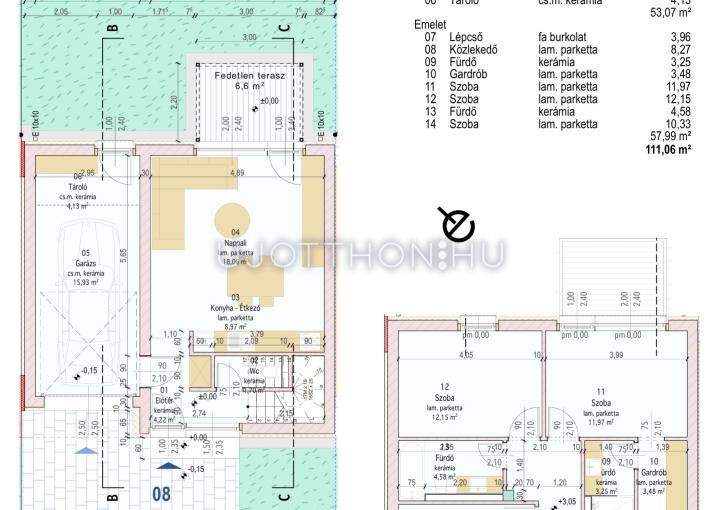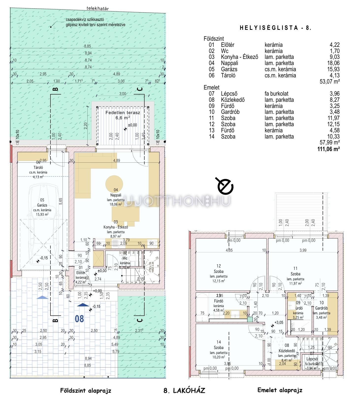 8. lakóház Br. 118 nm, nappali + 3 hálós: