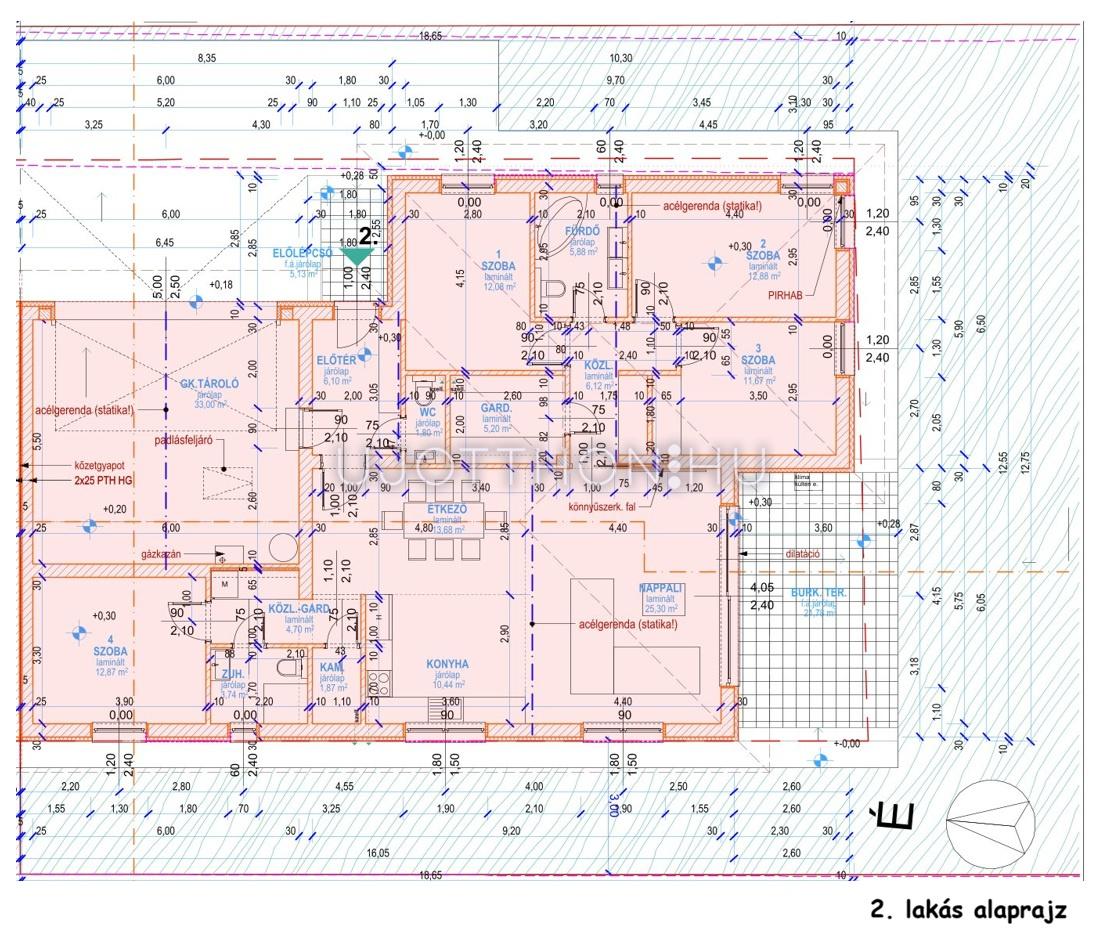 2. lakás 181 nm számított alapterülettel: (134nm + 27nm + 33 nm)