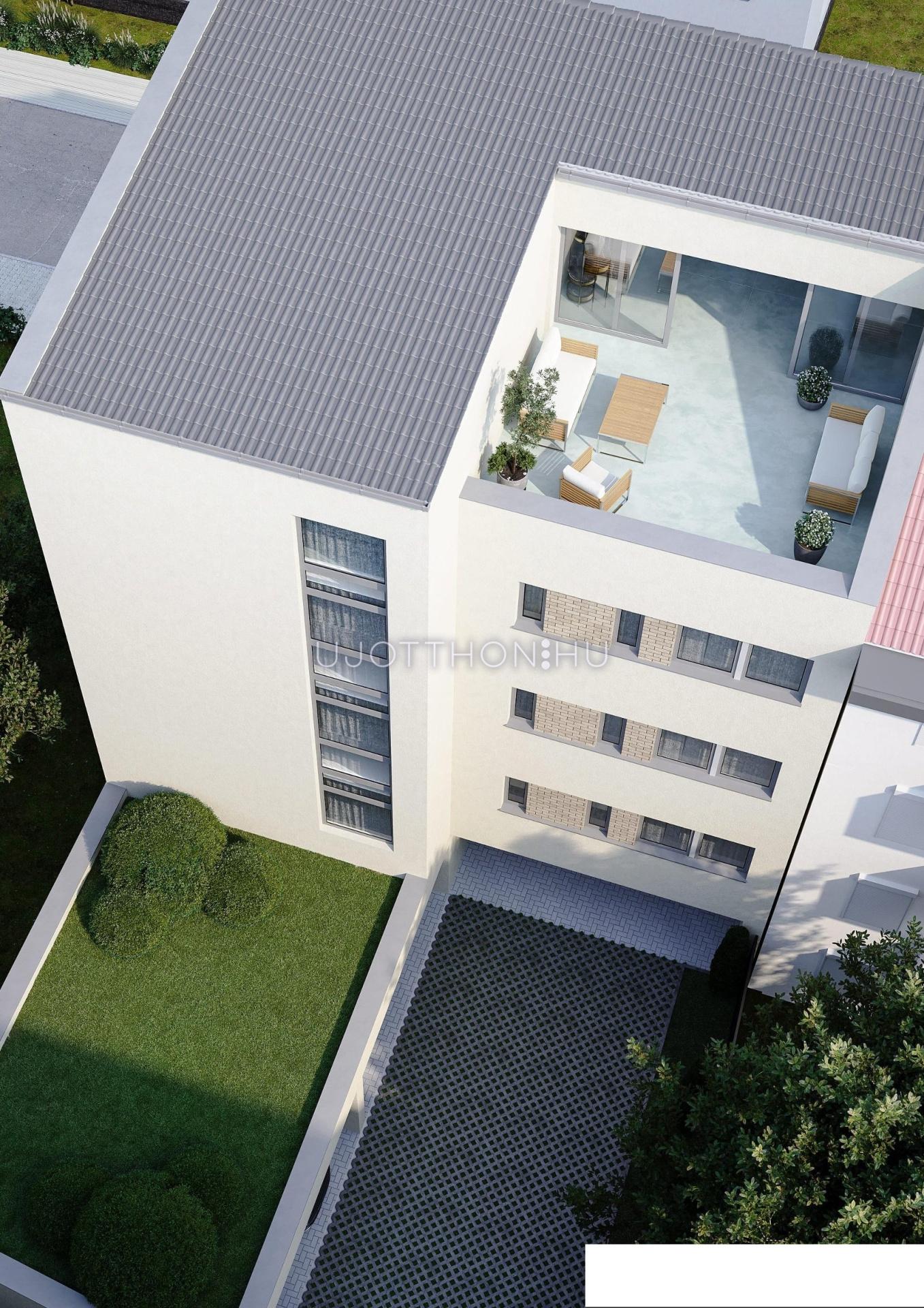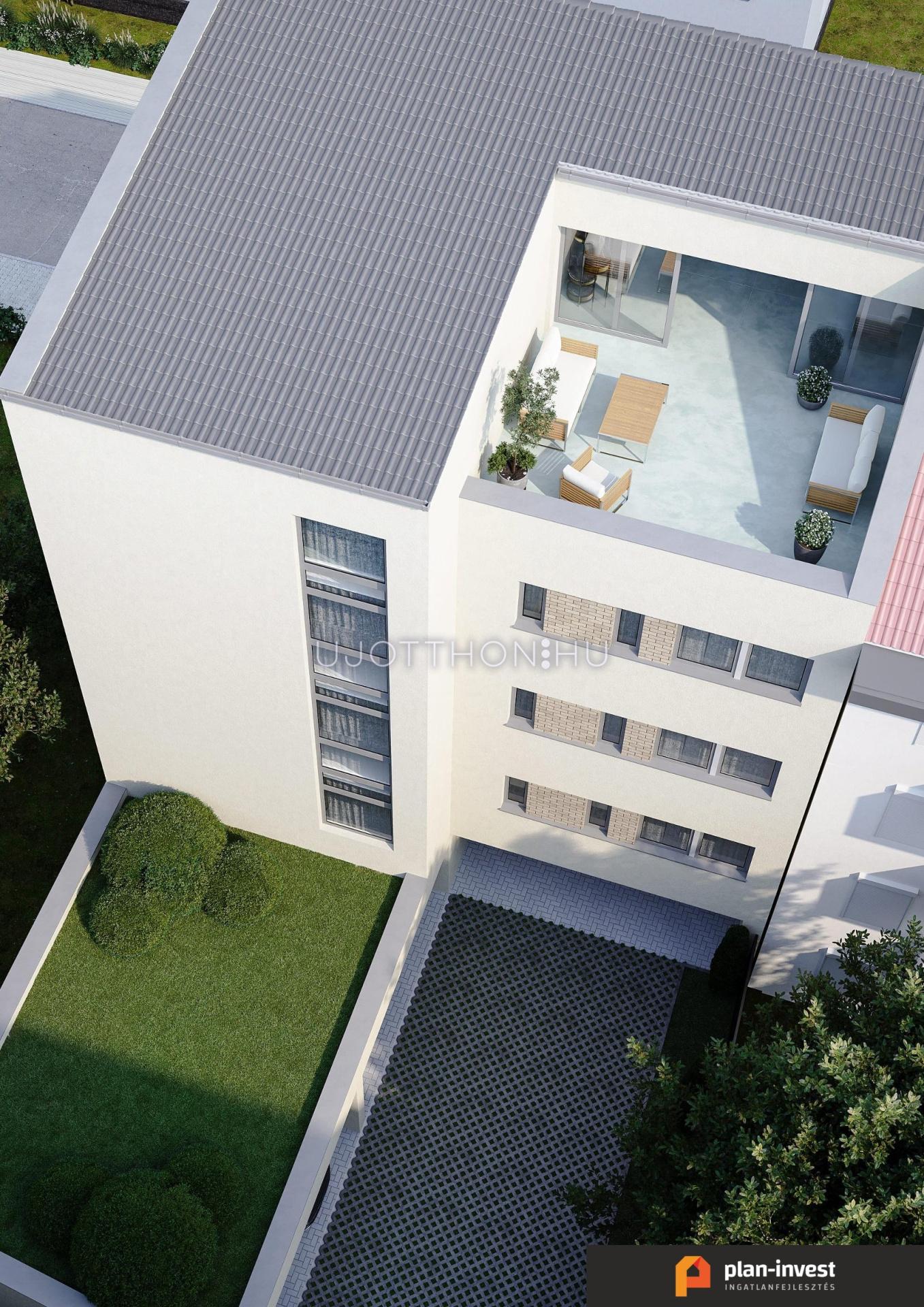 Földszinten egy 33 m2 - es iroda + a gépkocsi parkolók kerülnek kialakításra, 1 - 2 - 3 emeleten szintenként 2 db lakás, + a 4. emeleten egy tetőtéri, nettó 70 m2 - es iroda kerül megépítésre.