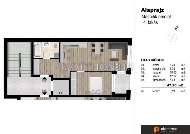 Ez az ingatlan a 2. emeleten található ( liftes ).