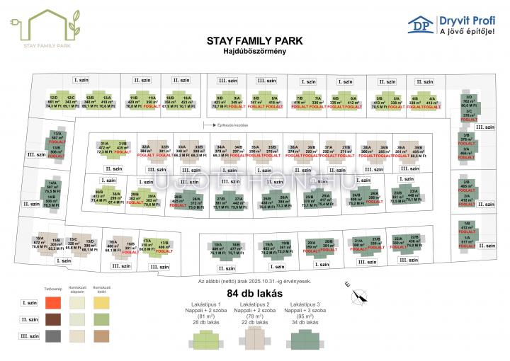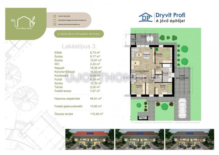 A STAY FAMILY PARK lakásai egyedülállóak a település lakáspiacán, mert az otthonokhoz parkosított előkert és privát hátsó kert is tartozik, tárolóval és (fedett) gépkocsibeállóval.
