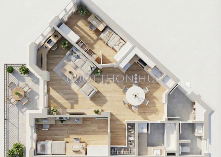 A lakások teljesen egyedi igények alapján is készülhetnek, akár alaprajzi módosításra is van lehetőség.