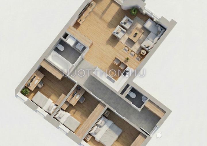 A lakások teljesen egyedi igények alapján is készülhetnek, akár alaprajzi módosításra is van lehetőség.