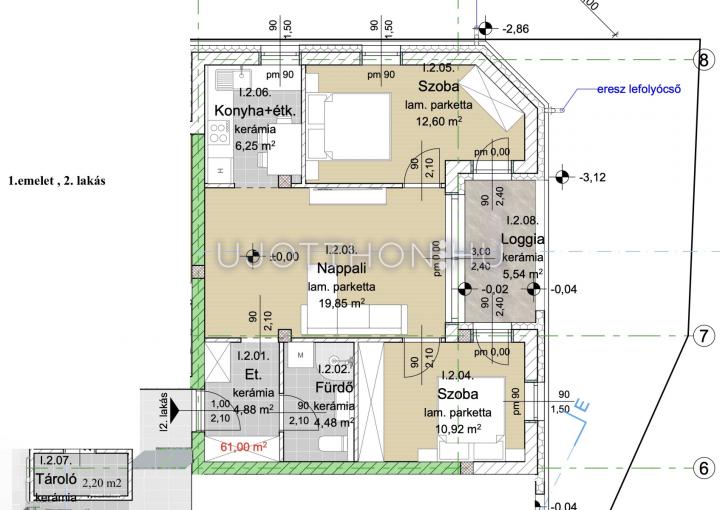 -Szobák: laminált parketta 7 500.-Ft. + áfa / nm